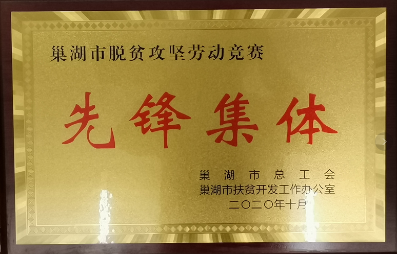 在2020年10月17日全国第七个“扶贫日”到来之际,安徽国通电力建设有限公司被授予巢湖市脱贫攻坚劳动竞赛“先锋集体”。
