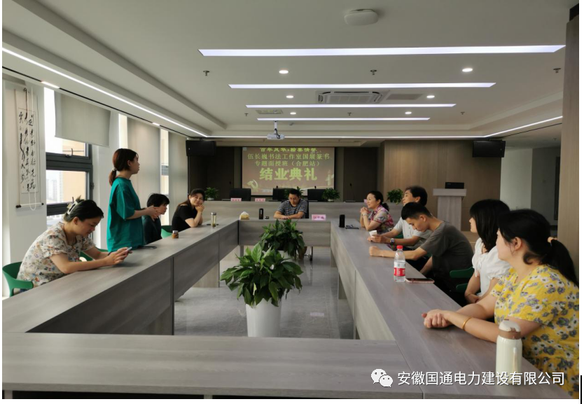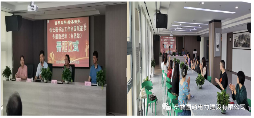 本次面授班由安徽清墨电力书画院叶桂梅女士和安徽扬帆书画工作室杨顺翠女士联合精心组织筹划,在面授班开班仪式中,安徽国通电力集团公司董事长司先荣也对伍长巍老师及各位学员的到来表示了热烈的欢迎,并表示本次活动给我们国通电力集团增添了许多书画艺术气息,对于国通电力职工来说也感受到了书法文化的熏陶,预祝各位学员学有所成。